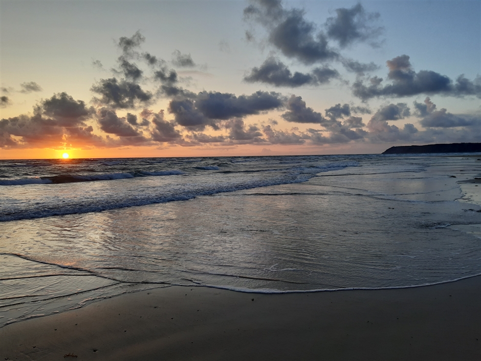 Lever du soleil sur la plage de Barneville